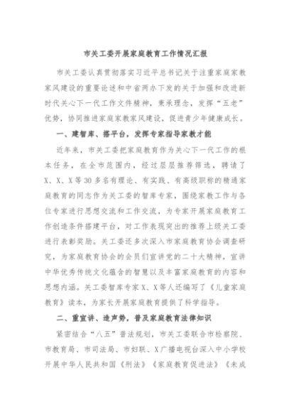 / 【七哥公文】2024年:市关工委开展家庭教育工作情况汇报+更多免费公文+VX:QiGeGongWen2024