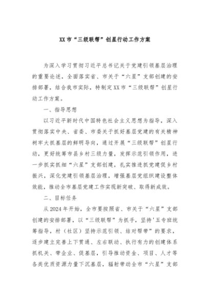 / 【七哥公文】2024年:XX市“三级联帮”创星行动工作方案+更多免费公文+VX:QiGeGongWen2024