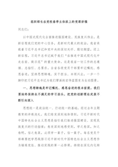 / 【七哥公文】2024年:组织部长在党校春季主体班上的党课讲稿+更多免费公文+VX:QiGeGongWen2024