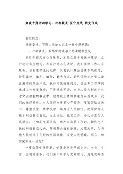/ 【七哥公文】2024年:廉政专题活动学习:心存敬畏 坚守底线 转变作风+更多免费公文+VX:QiGeGongWen2024