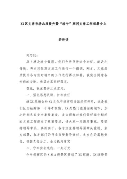 【七哥公文】2024年:XX区文旅市场品质提升暨“端午”期间文旅工作部署会上的讲话+更多免费公文+VX:QiGeGongWen2024