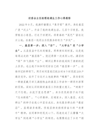 / 【七哥公文】2024年:村委会主任助理选调生工作心得感悟+更多免费公文+VX:QiGeGongWen2024