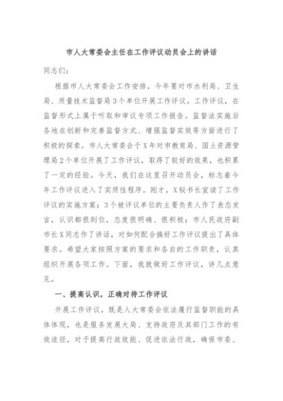 / 【七哥公文】2024年:市人大常委会主任在工作评议动员会上的讲话+更多免费公文+VX:QiGeGongWen2024