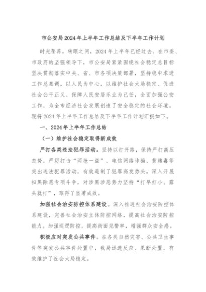 / 【七哥公文】2024年:市公安局2024年上半年工作总结及下半年工作计划+更多免费公文+VX:QiGeGongWen2024