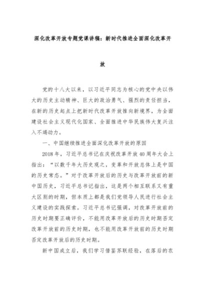 【七哥公文】2024年:深化改革开放专题党课讲稿:新时代推进全面深化改革开放+更多免费公文+VX:QiGeGongWen2024