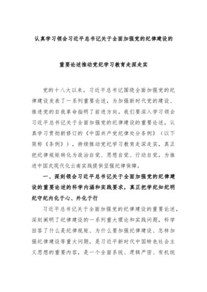 【七哥公文】2024年:认真学习领会习近平总书记关于全面加强党的纪律建设的重要论述推动党纪学习教育走深走实+更多免费公文+VX:QiGeGongWen2024