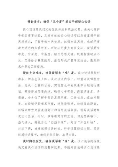 / 【七哥公文】2024年:研讨发言:确保“三个度”抓实干部谈心谈话+更多免费公文+VX:QiGeGongWen2024