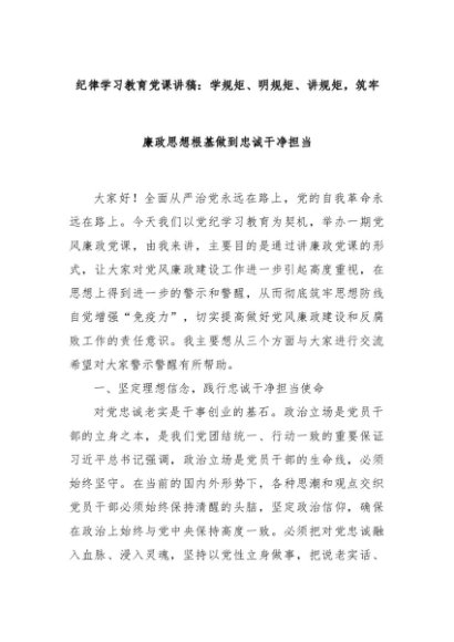 【七哥公文】2024年:纪律学习教育党课讲稿:学规矩、明规矩、讲规矩,筑牢廉政思想根基做到忠诚干净担当+更多免费公文+VX:QiGeGongWen2024