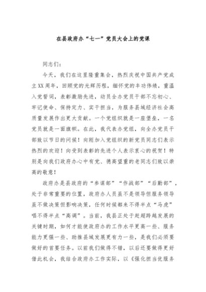 / 【七哥公文】2024年:在县政府办“七一”党员大会上的党课+更多免费公文+VX:QiGeGongWen2024