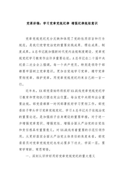 / 【七哥公文】2024年:党课讲稿:学习党章党规纪律 增强纪律规矩意识+更多免费公文+VX:QiGeGongWen2024