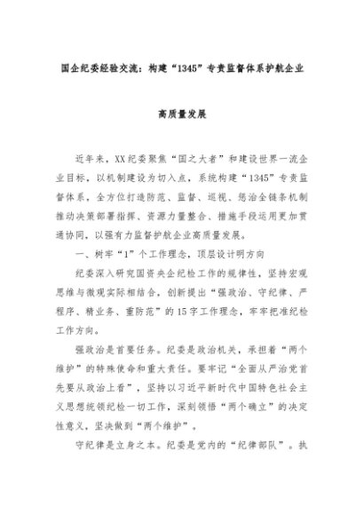 【七哥公文】2024年:国企纪委经验交流:构建“1345”专责监督体系护航企业高质量发展+更多免费公文+VX:QiGeGongWen2024
