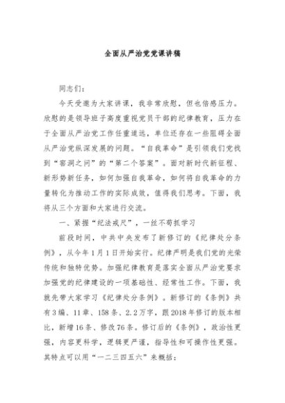 / 【七哥公文】2024年:全面从严治党党课讲稿+更多免费公文+VX:QiGeGongWen2024