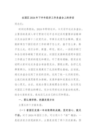 【七哥公文】2024年:在园区2024年下半年经济工作务虚会上的讲话+更多免费公文+VX:QiGeGongWen2024