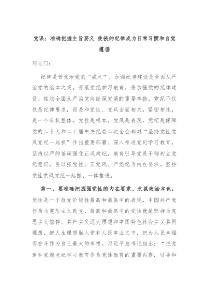 【七哥公文】2024年:党课:准确把握主旨要义 使铁的纪律成为日常习惯和自觉遵循+更多免费公文+VX:QiGeGongWen2024