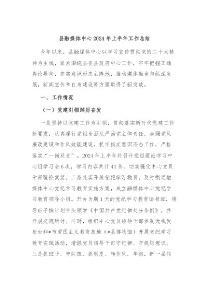 / 【七哥公文】2024年:县融媒体中心2024年上半年工作总结+更多免费公文+VX:QiGeGongWen2024