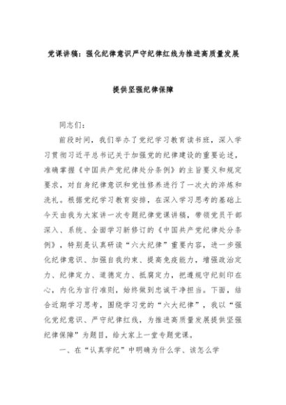 【七哥公文】2024年:党课讲稿:强化纪律意识严守纪律红线为推进高质量发展提供坚强纪律保障+更多免费公文+VX:QiGeGongWen2024