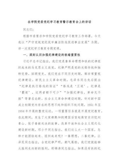 / 【七哥公文】2024年:在学院党委党纪学习教育警示教育会上的讲话+更多免费公文+VX:QiGeGongWen2024