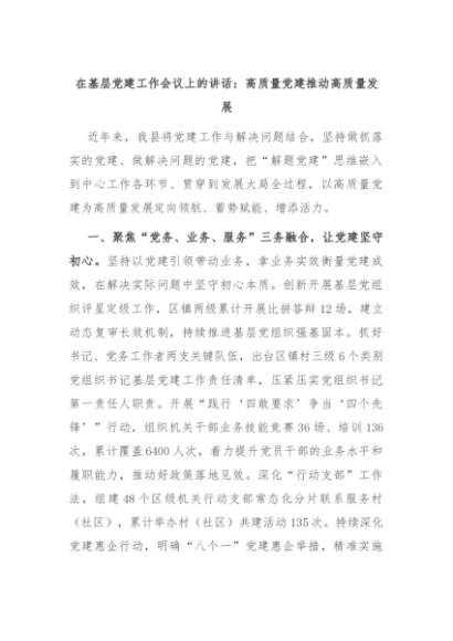 【七哥公文】2024年:在基层党建工作会议上的讲话:高质量党建推动高质量发展+更多免费公文+VX:QiGeGongWen2024