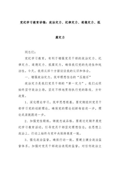 【七哥公文】2024年:党纪学习教育讲稿:政治定力、纪律定力、道德定力、抵腐定力+更多免费公文+VX:QiGeGongWen2024