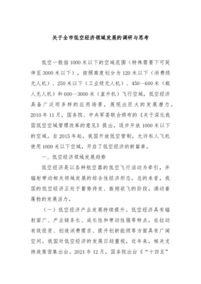 / 【七哥公文】2024年:关于全市低空经济领域发展的调研与思考+更多免费公文+VX:QiGeGongWen2024