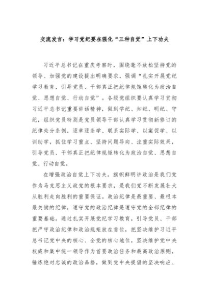 / 【七哥公文】2024年:交流发言:学习党纪要在强化“三种自觉”上下功夫+更多免费公文+VX:QiGeGongWen2024