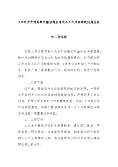【七哥公文】2024年:X市农业农村局集中整治群众身边不正之风和腐败问题阶段性工作总结+更多免费公文+VX:QiGeGongWen2024