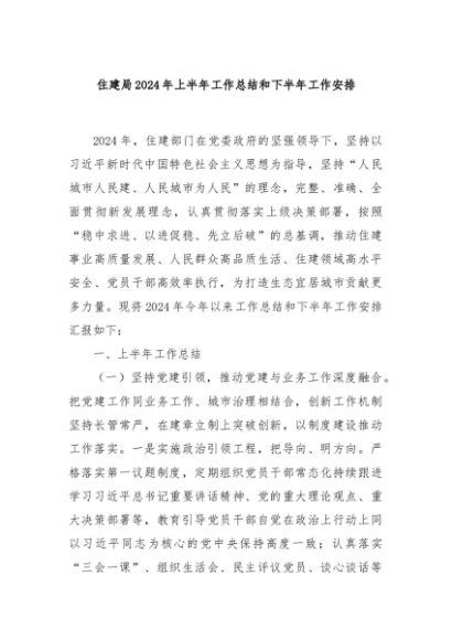 / 【七哥公文】2024年:住建局2024年上半年工作总结和下半年工作安排+更多免费公文+VX:QiGeGongWen2024