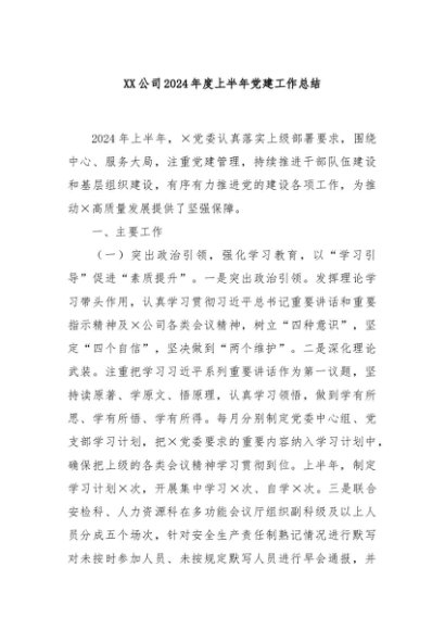 / 【七哥公文】2024年:XX公司2024年度上半年党建工作总结+更多免费公文+VX:QiGeGongWen2024