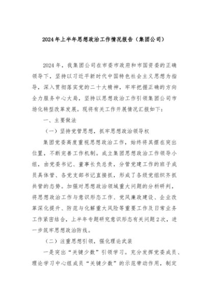/ 【七哥公文】2024年:2024年上半年思想政治工作情况报告(集团公司)+更多免费公文+VX:QiGeGongWen2024