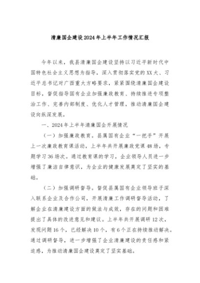 / 【七哥公文】2024年:清廉国企建设2024年上半年工作情况汇报+更多免费公文+VX:QiGeGongWen2024