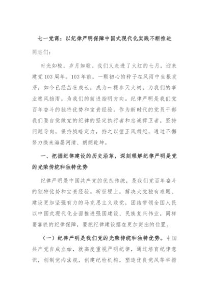 / 【七哥公文】2024年:七一党课:以纪律严明保障中国式现代化实践不断推进+更多免费公文+VX:QiGeGongWen2024