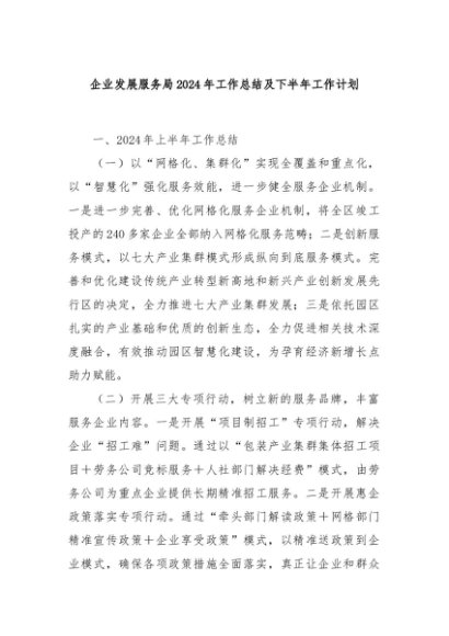 / 【七哥公文】2024年:企业发展服务局2024年工作总结及下半年工作计划+更多免费公文+VX:QiGeGongWen2024