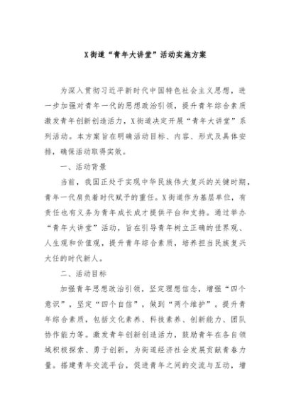 / 【七哥公文】2024年:X街道“青年大讲堂”活动实施方案+更多免费公文+VX:QiGeGongWen2024