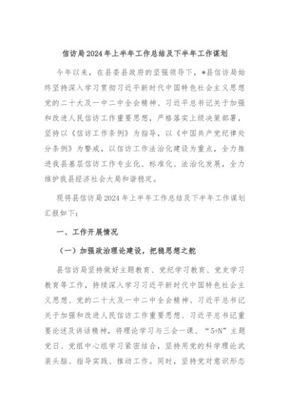 / 【七哥公文】2024年:信访局2024年上半年工作总结及下半年工作谋划+更多免费公文+VX:QiGeGongWen2024