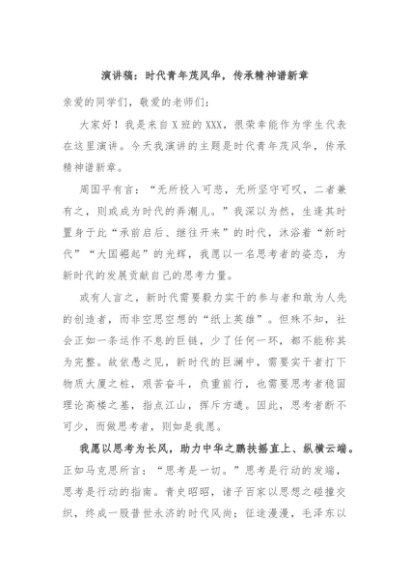 【七哥公文】2024年:演讲稿:时代青年茂风华,传承精神谱新章+更多免费公文+VX:QiGeGongWen2024