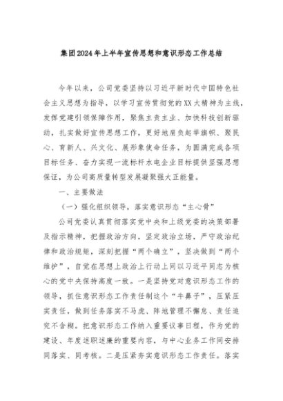/ 【七哥公文】2024年:集团2024年上半年宣传思想和意识形态工作总结+更多免费公文+VX:QiGeGongWen2024