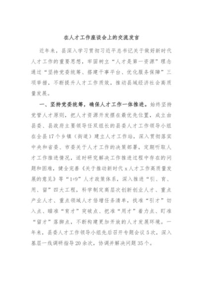 / 【七哥公文】2024年:在人才工作座谈会上的交流发言+更多免费公文+VX:QiGeGongWen2024
