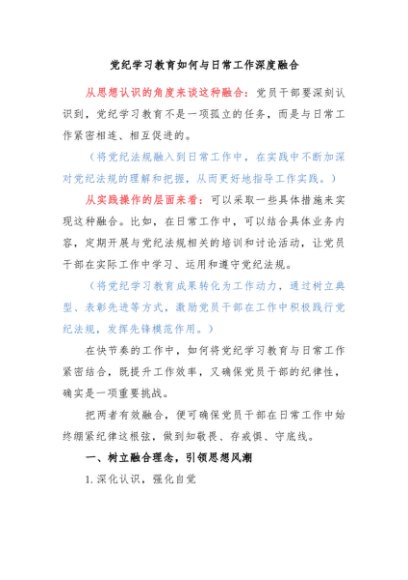 / 【七哥公文】2024年:关于党纪学习教育如何与日常工作深度融合(讲稿)+更多免费公文+VX:QiGeGongWen2024