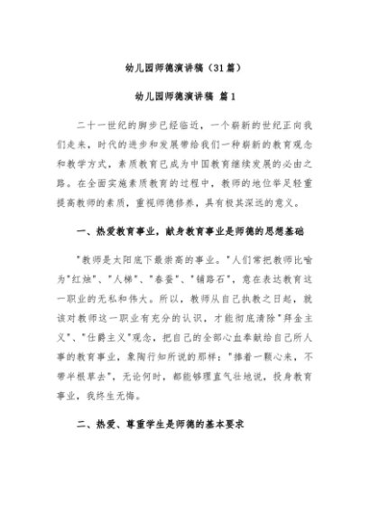 【七哥公文】2024年:(31篇)幼儿园师德演讲稿+更多免费公文+VX:QiGeGongWen2024