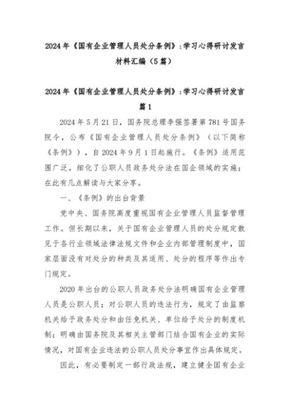 【七哥公文】2024年:(5篇)2024年《国有企业管理人员处分条例》学习心得研讨发言材料汇编+更多免费公文+VX:QiGeGongWen2024