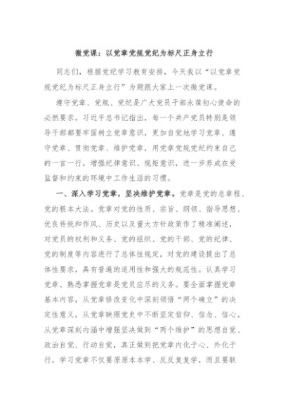 【七哥公文】2024年:微党课:以党章党规党纪为标尺正身立行+更多免费公文+VX:QiGeGongWen2024