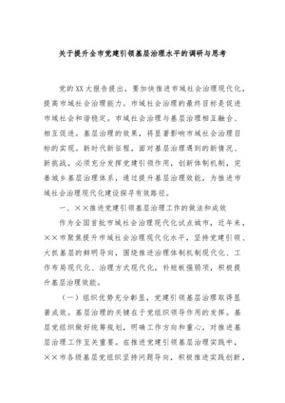 / 【七哥公文】2024年:关于提升全市党建引领基层治理水平的调研与思考+更多免费公文+VX:QiGeGongWen2024