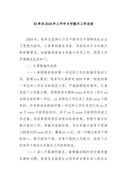 / 【七哥公文】2024年:XX单位2024年上半年乡村振兴工作总结+更多免费公文+VX:QiGeGongWen2024