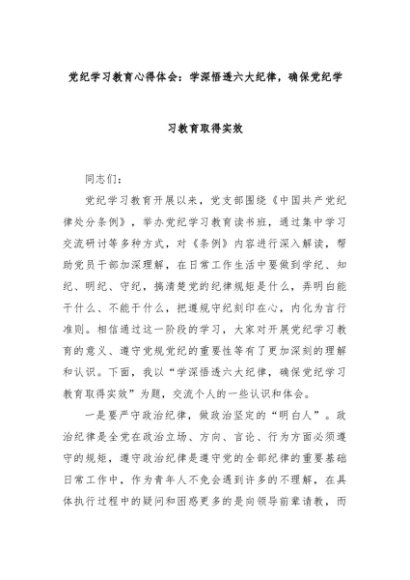 【七哥公文】2024年:党纪学习教育心得体会:学深悟透六大纪律,确保党纪学习教育取得实效+更多免费公文+VX:QiGeGongWen2024