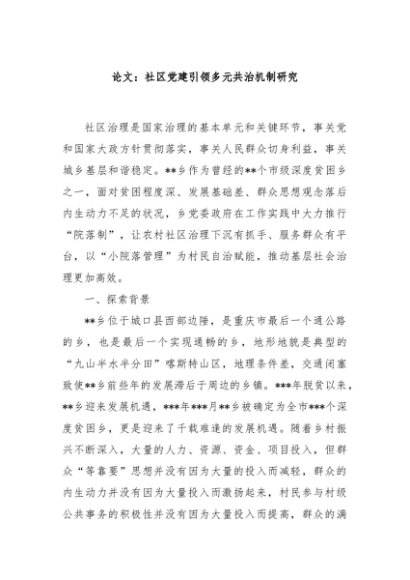 / 【七哥公文】2024年:论文:社区党建引领多元共治机制研究+更多免费公文+VX:QiGeGongWen2024