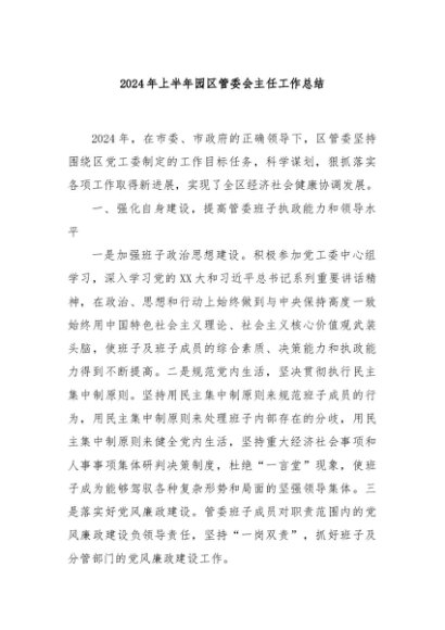 / 【七哥公文】2024年:2024年上半年园区管委会主任工作总结+更多免费公文+VX:QiGeGongWen2024