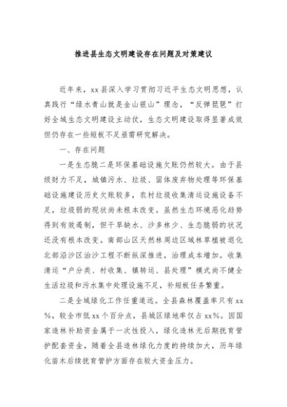 / 【七哥公文】2024年:推进县生态文明建设存在问题及对策建议+更多免费公文+VX:QiGeGongWen2024