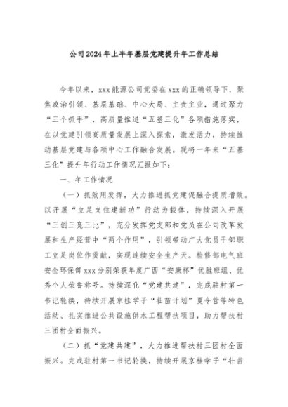 / 【七哥公文】2024年:公司2024年上半年基层党建提升年工作总结+更多免费公文+VX:QiGeGongWen2024
