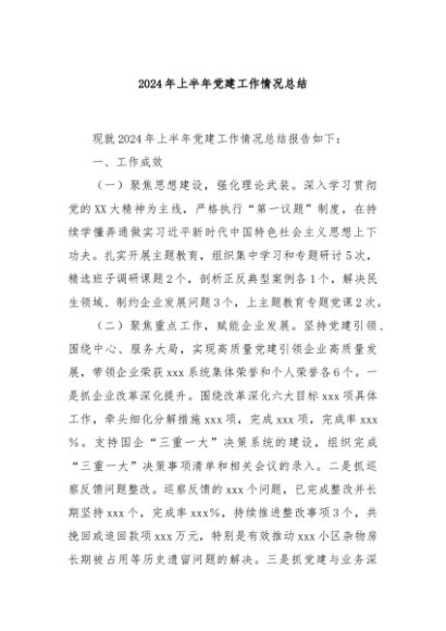 / 【七哥公文】2024年:2024年上半年党建工作情况总结+更多免费公文+VX:QiGeGongWen2024