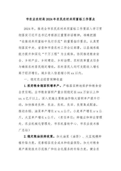 / 【七哥公文】2024年:市农业农村局2024年农民农村共同富裕工作要点+更多免费公文+VX:QiGeGongWen2024
